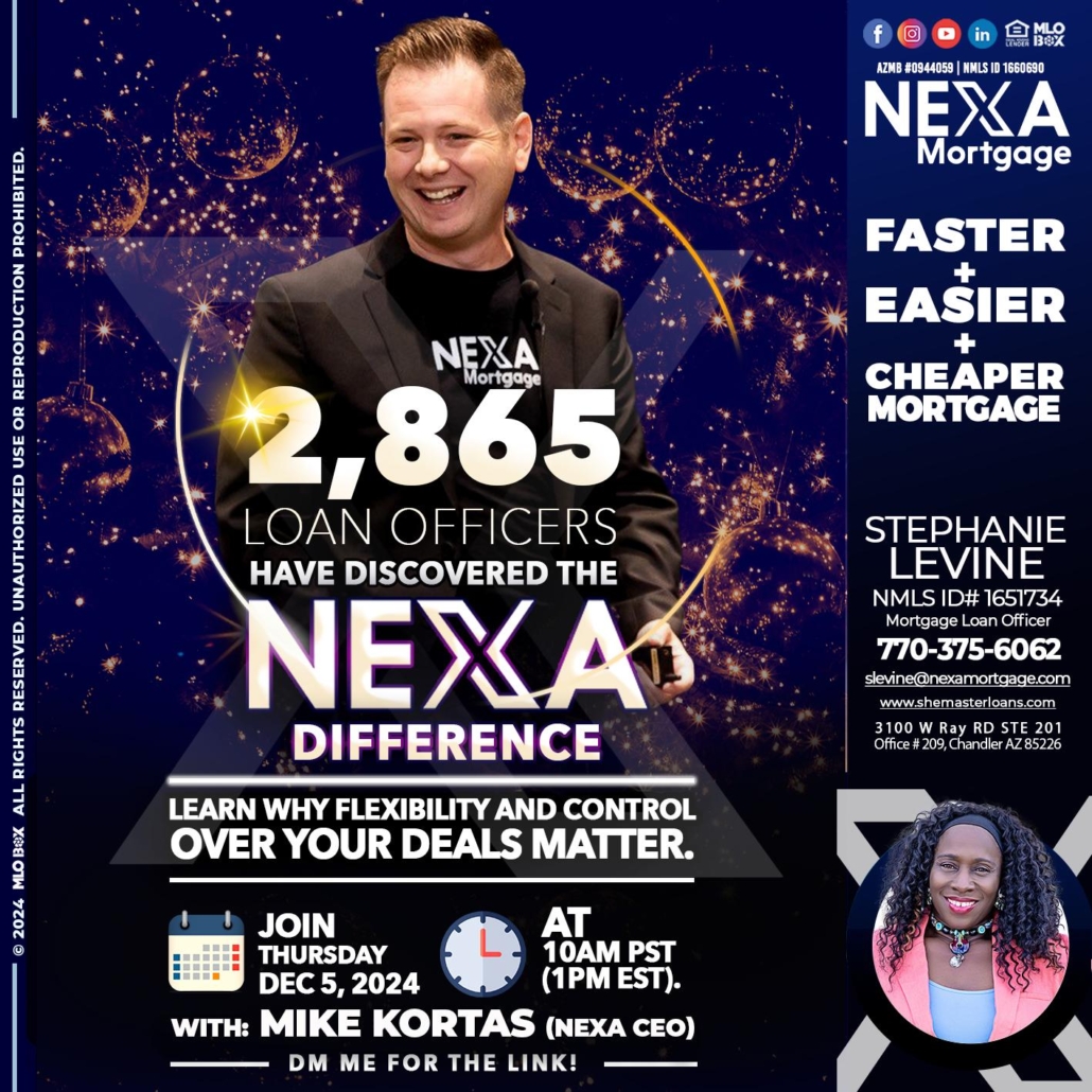 2,865 LOAN OFFICERS - Stephanie Levine -Mortgage Loan OfficerHi, my name is Stephanie Levine. I’m a Loan Officer with NEXA Mortgage LLC., offering personalized mortgage solutions, fast customized quotes, great rates and service with integrity.