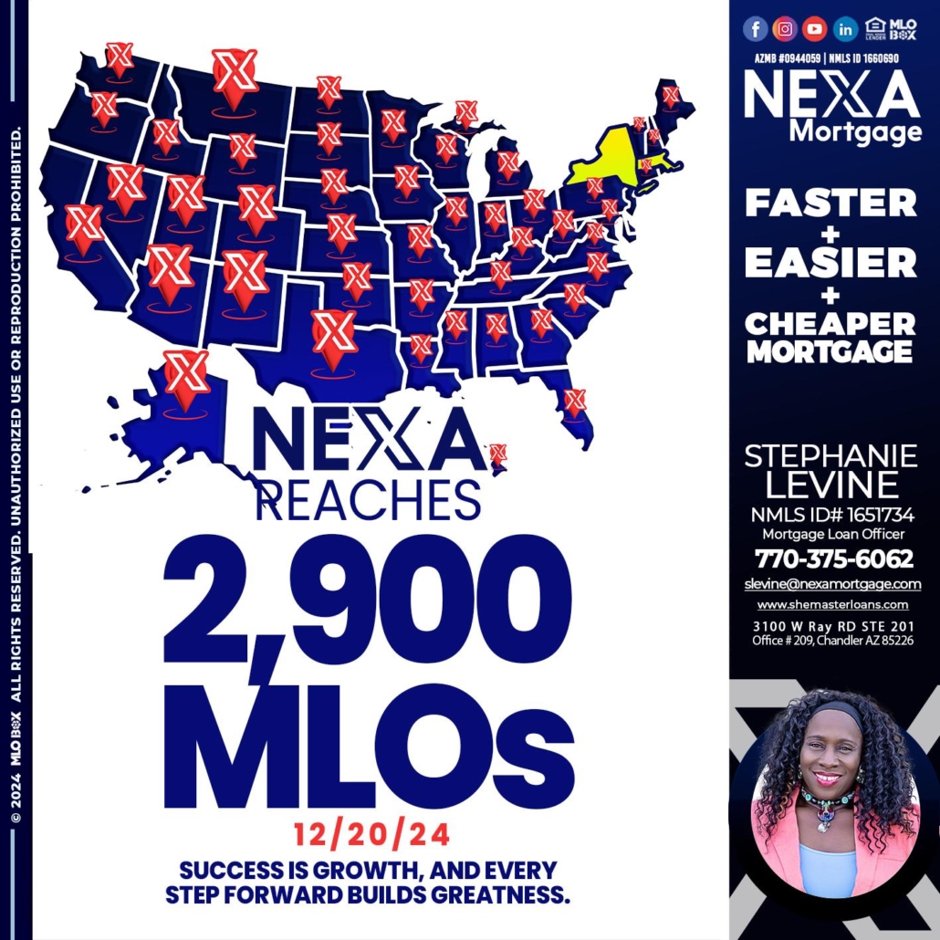 2900 MLOS - Stephanie Levine -Mortgage Loan OfficerHi, my name is Stephanie Levine. I’m a Loan Officer with NEXA Mortgage LLC., offering personalized mortgage solutions, fast customized quotes, great rates and service with integrity.