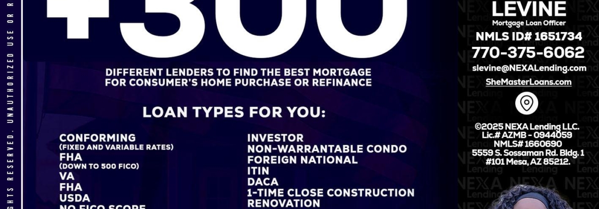 300+ LENDERS - Stephanie Levine -Mortgage Loan OfficerHi, my name is Stephanie Levine. I’m a Loan Officer with NEXA Lending LLC., offering personalized mortgage solutions, fast customized quotes, great rates and service with integrity.