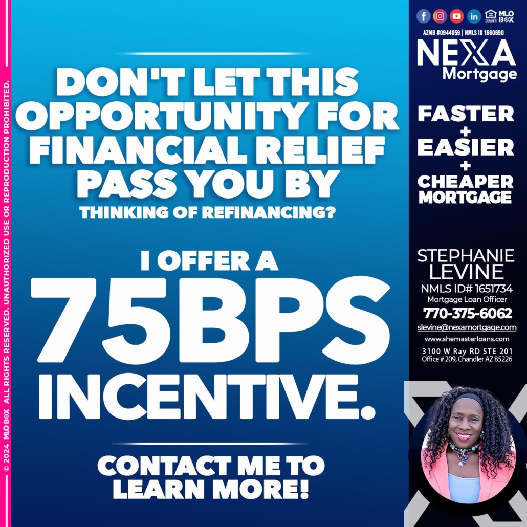 Hi, my name is Stephanie Levine. I’m a Loan Officer with NEXA Mortgage LLC., offering personalized mortgage solutions, fast customized quotes, great rates and service with integrity.