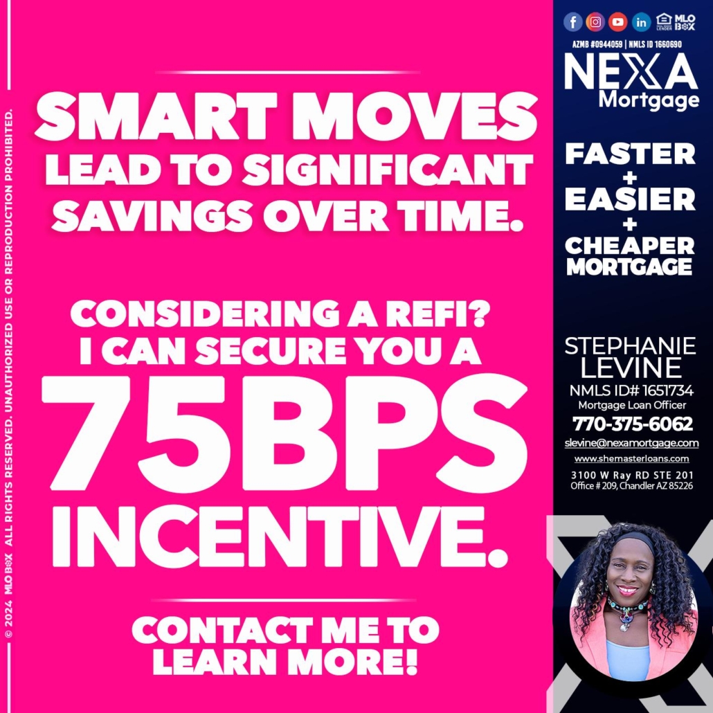 Hi, my name is Stephanie Levine. I’m a Loan Officer with NEXA Mortgage LLC., offering personalized mortgage solutions, fast customized quotes, great rates and service with integrity.