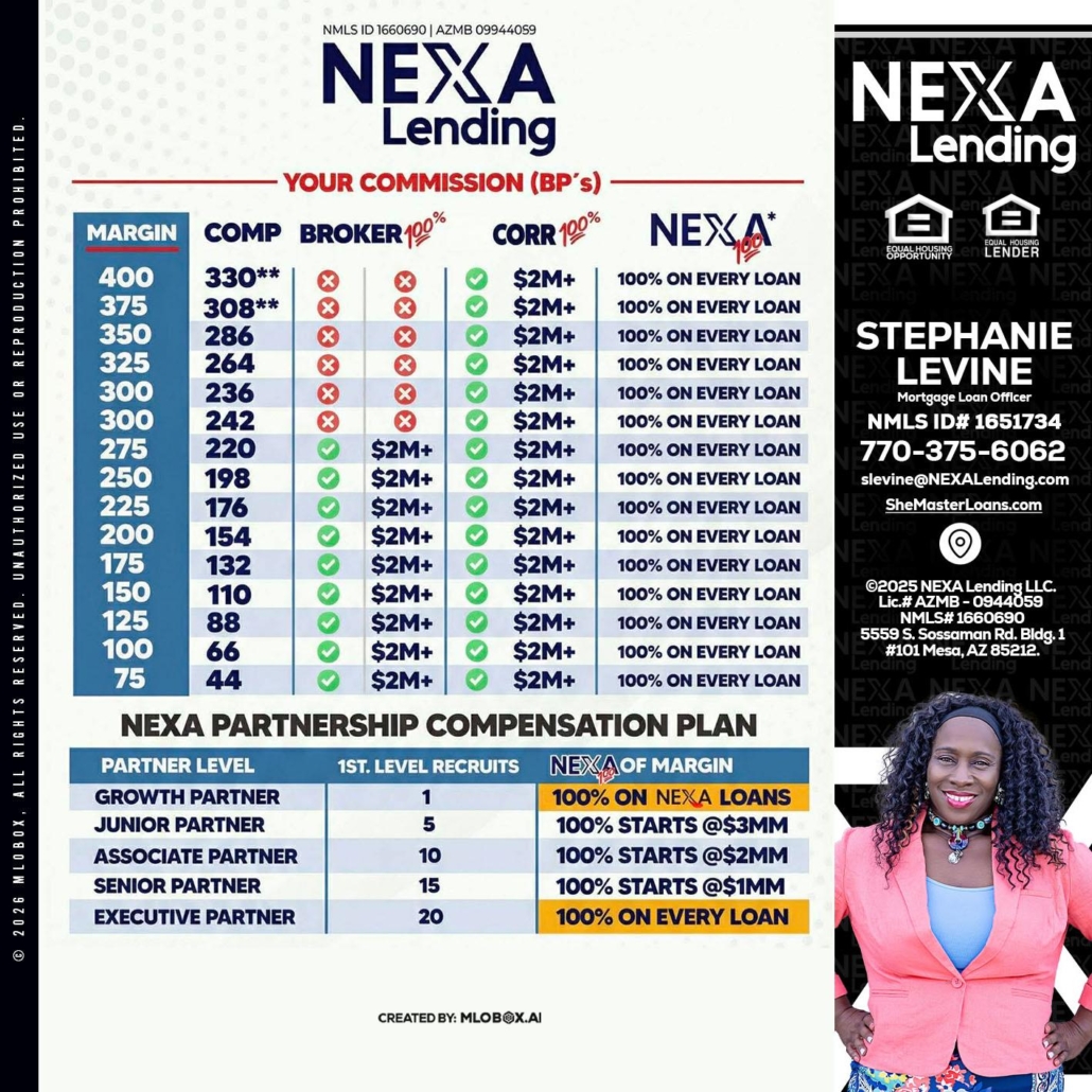 Hi, my name is Stephanie Levine. I’m a Loan Officer with NEXA Lending LLC., offering personalized mortgage solutions, fast customized quotes, great rates and service with integrity.
