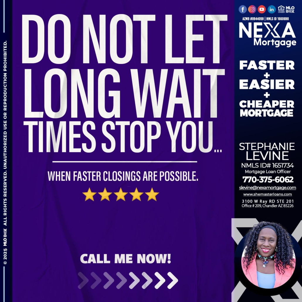 Hi, my name is Stephanie Levine. I’m a Loan Officer with NEXA Mortgage LLC., offering personalized mortgage solutions, fast customized quotes, great rates and service with integrity.