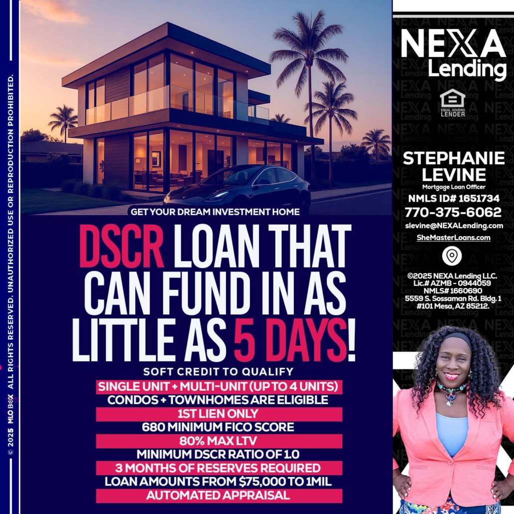 Hi, my name is Stephanie Levine. I’m a Loan Officer with NEXA Mortgage LLC., offering personalized mortgage solutions, fast customized quotes, great rates and service with integrity.