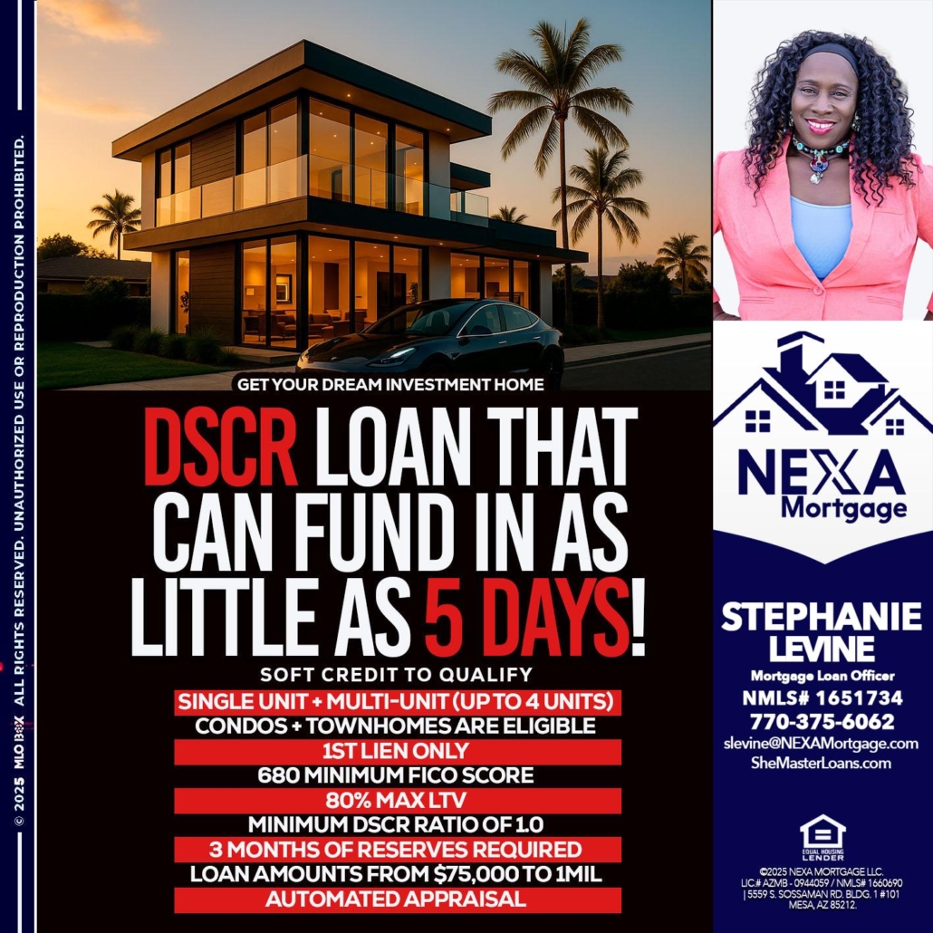Hi, my name is Stephanie Levine. I’m a Loan Officer with NEXA Mortgage LLC., offering personalized mortgage solutions, fast customized quotes, great rates and service with integrity.