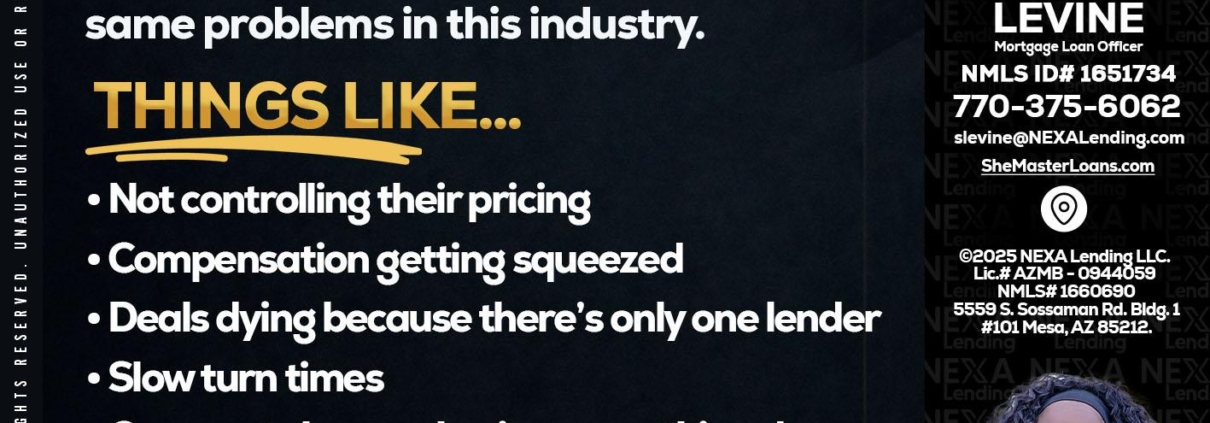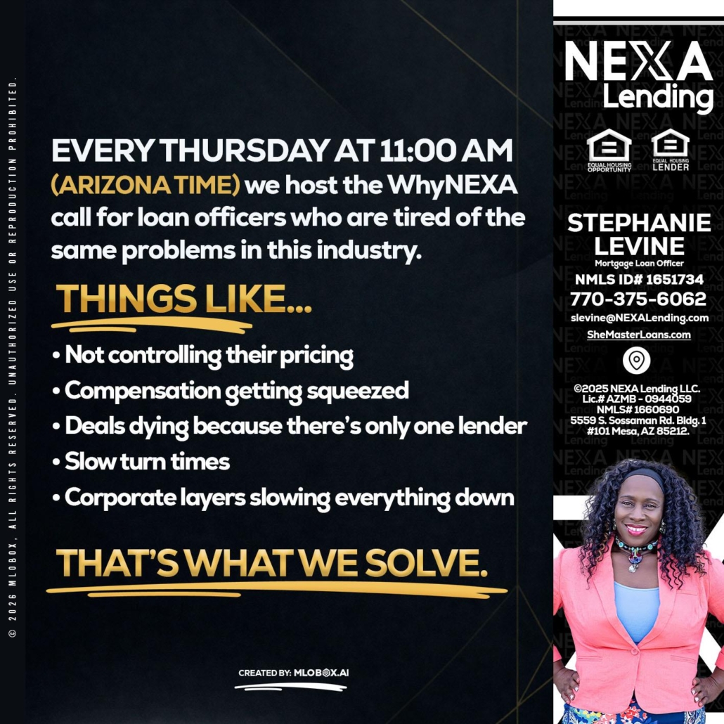 Hi, my name is Stephanie Levine. I’m a Loan Officer with NEXA Lending LLC., offering personalized mortgage solutions, fast customized quotes, great rates and service with integrity.