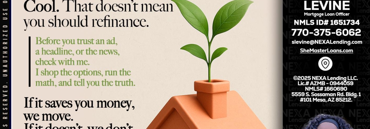 Hi, my name is Stephanie Levine. I’m a Loan Officer with NEXA Lending LLC., offering personalized mortgage solutions, fast customized quotes, great rates and service with integrity.