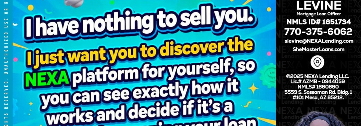 I HAVE NOTHING - Stephanie Levine -Mortgage Loan OfficerHi, my name is Stephanie Levine. I’m a Loan Officer with NEXA Lending LLC., offering personalized mortgage solutions, fast customized quotes, great rates and service with integrity.