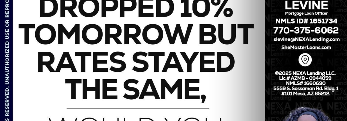 Hi, my name is Stephanie Levine. I’m a Loan Officer with NEXA Mortgage LLC., offering personalized mortgage solutions, fast customized quotes, great rates and service with integrity.