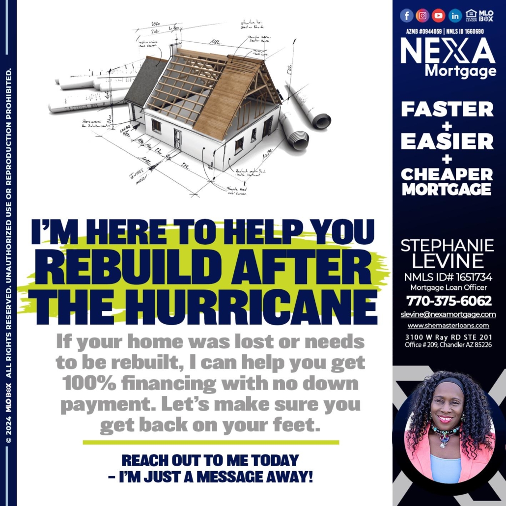 IM HERE TO HELP - Stephanie Levine -Mortgage Loan OfficerHi, my name is Stephanie Levine. I’m a Loan Officer with NEXA Mortgage LLC., offering personalized mortgage solutions, fast customized quotes, great rates and service with integrity.