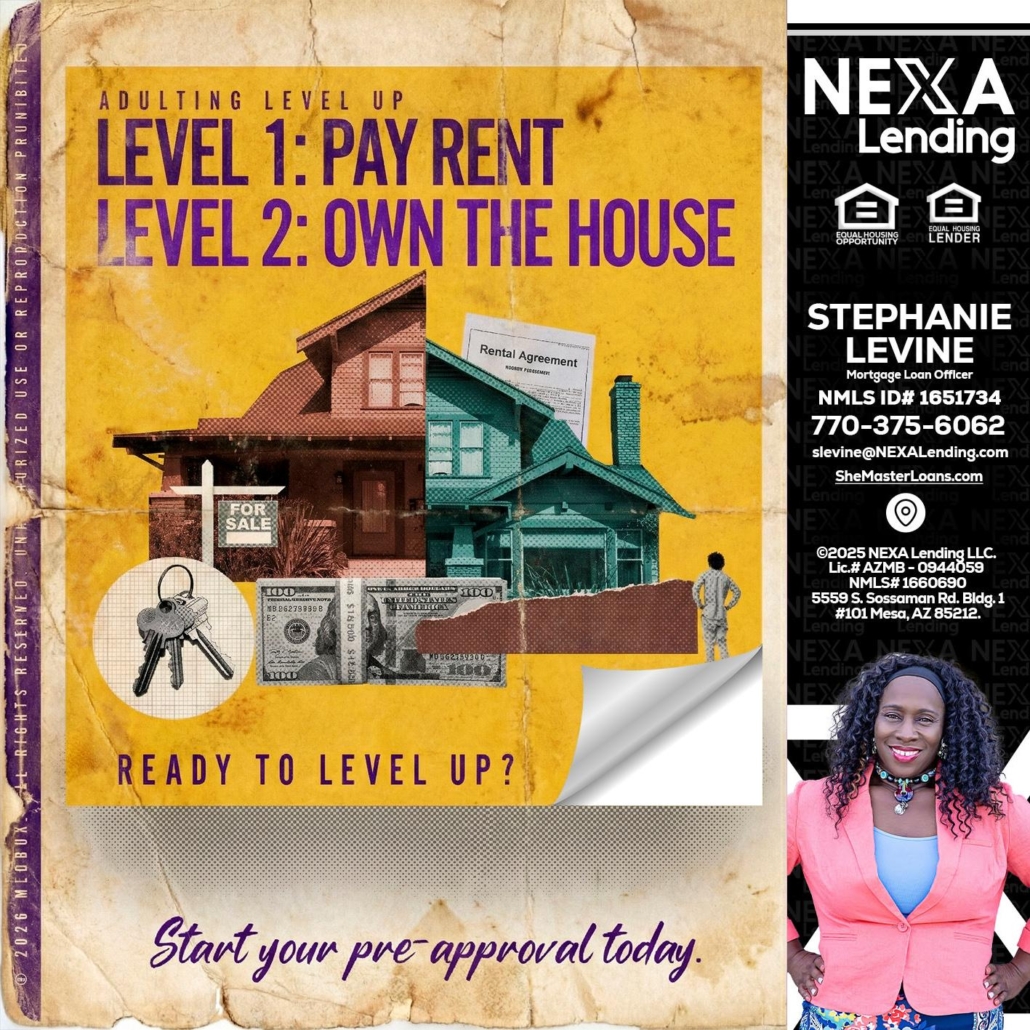 Hi, my name is Stephanie Levine. I’m a Loan Officer with NEXA Lending LLC., offering personalized mortgage solutions, fast customized quotes, great rates and service with integrity.
