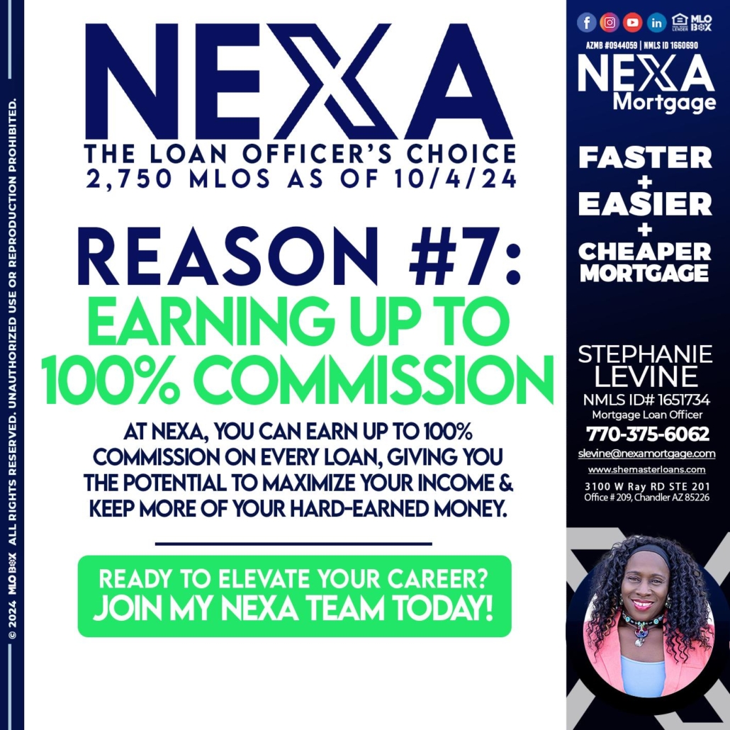 Hi, my name is Stephanie Levine. I’m a Loan Officer with NEXA Mortgage LLC., offering personalized mortgage solutions, fast customized quotes, great rates and service with integrity.