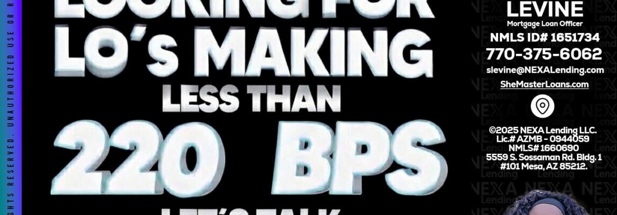 Hi, my name is Stephanie Levine. I’m a Loan Officer with NEXA Lending LLC., offering personalized mortgage solutions, fast customized quotes, great rates and service with integrity.