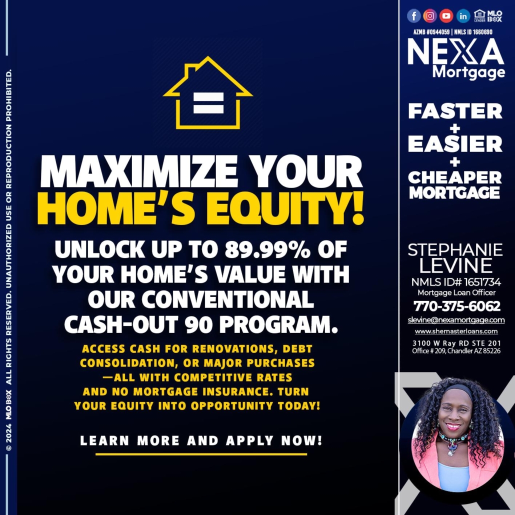 Hi, my name is Stephanie Levine. I’m a Loan Officer with NEXA Mortgage LLC., offering personalized mortgage solutions, fast customized quotes, great rates and service with integrity.