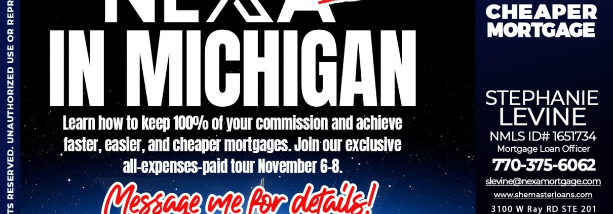 MICHIGAN TRIP NEXA 100 - Stephanie Levine -Mortgage Loan OfficerHi, my name is Stephanie Levine. I’m a Loan Officer with NEXA Mortgage LLC., offering personalized mortgage solutions, fast customized quotes, great rates and service with integrity.