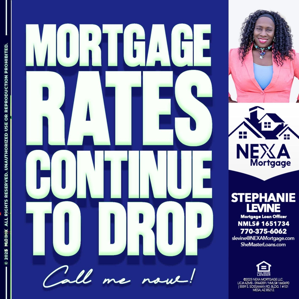 Hi, my name is Stephanie Levine. I’m a Loan Officer with NEXA Mortgage LLC., offering personalized mortgage solutions, fast customized quotes, great rates and service with integrity.