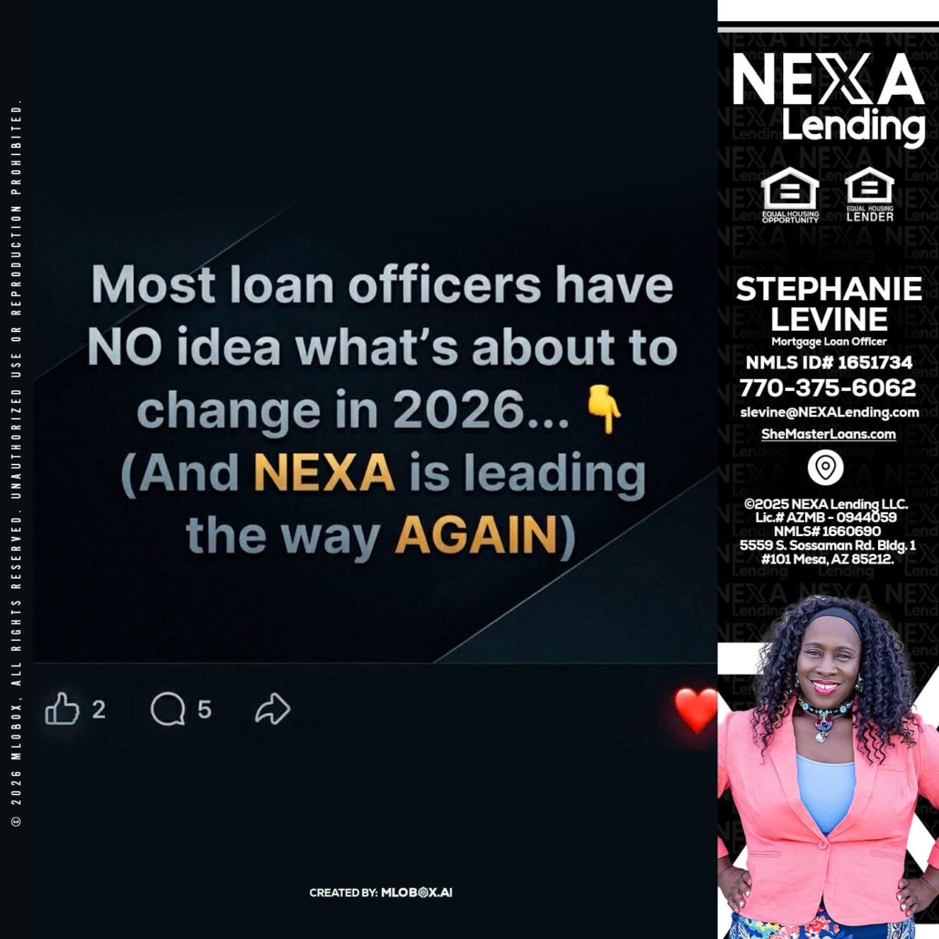 Hi, my name is Stephanie Levine. I’m a Loan Officer with NEXA Lending LLC., offering personalized mortgage solutions, fast customized quotes, great rates and service with integrity.
