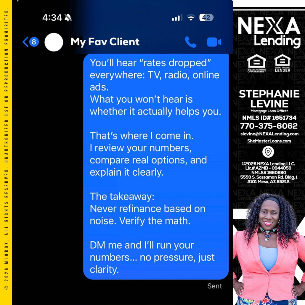 MY FAV CLIENT - Stephanie Levine -Mortgage Loan OfficerHi, my name is Stephanie Levine. I’m a Loan Officer with NEXA Lending LLC., offering personalized mortgage solutions, fast customized quotes, great rates and service with integrity.