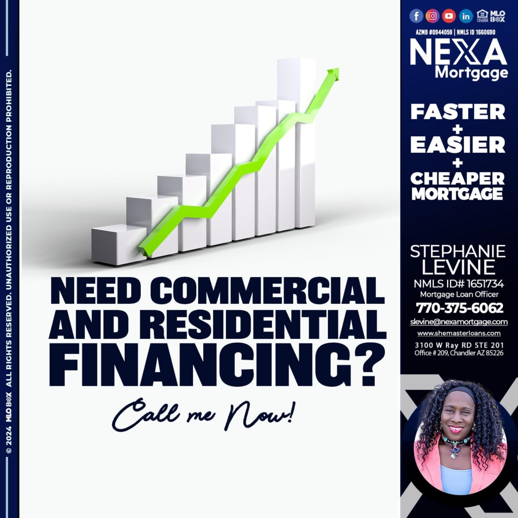 NEED COMERCIAL LOAN? - Stephanie Levine -Mortgage Loan OfficerHi, my name is Stephanie Levine. I’m a Loan Officer with NEXA Mortgage LLC., offering personalized mortgage solutions, fast customized quotes, great rates and service with integrity.