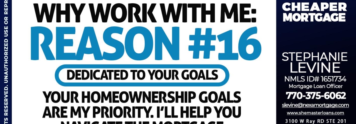 Hi, my name is Stephanie Levine. I’m a Loan Officer with NEXA Mortgage LLC., offering personalized mortgage solutions, fast customized quotes, great rates and service with integrity.