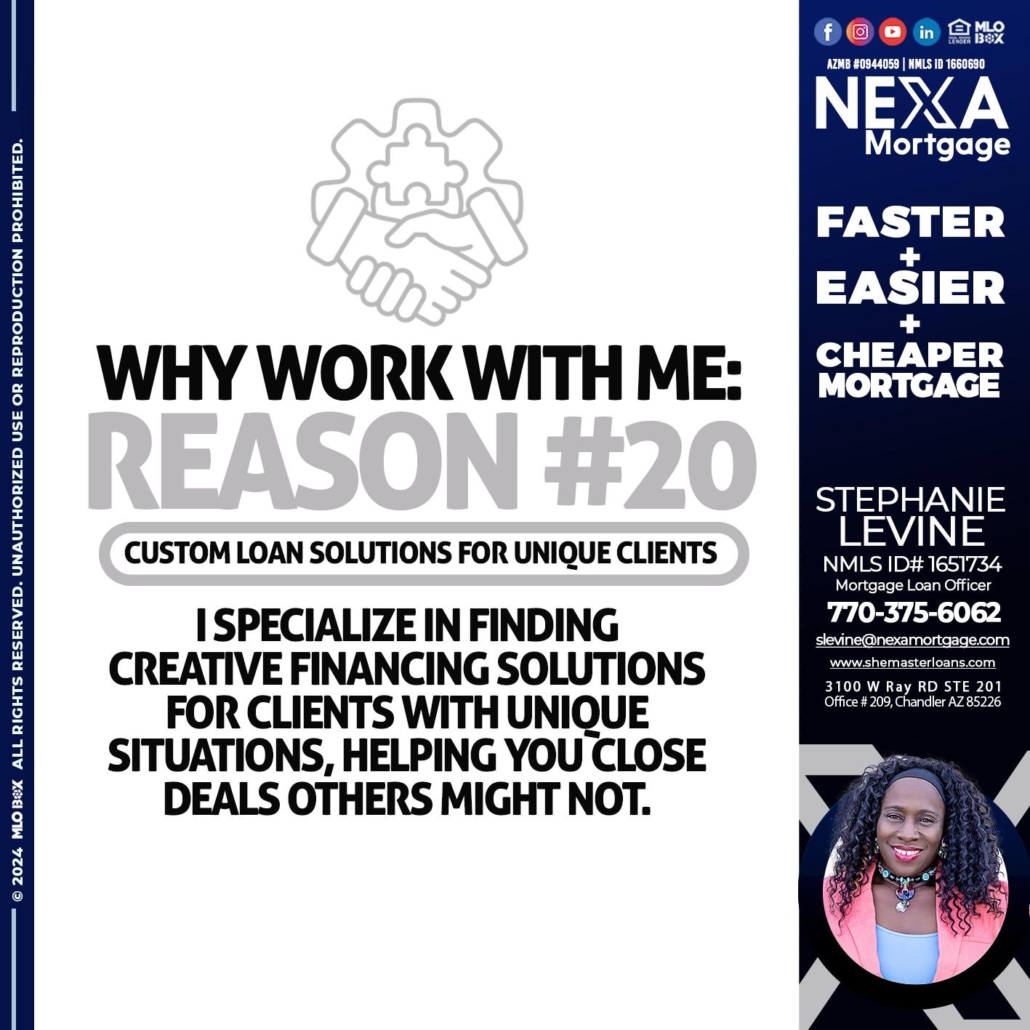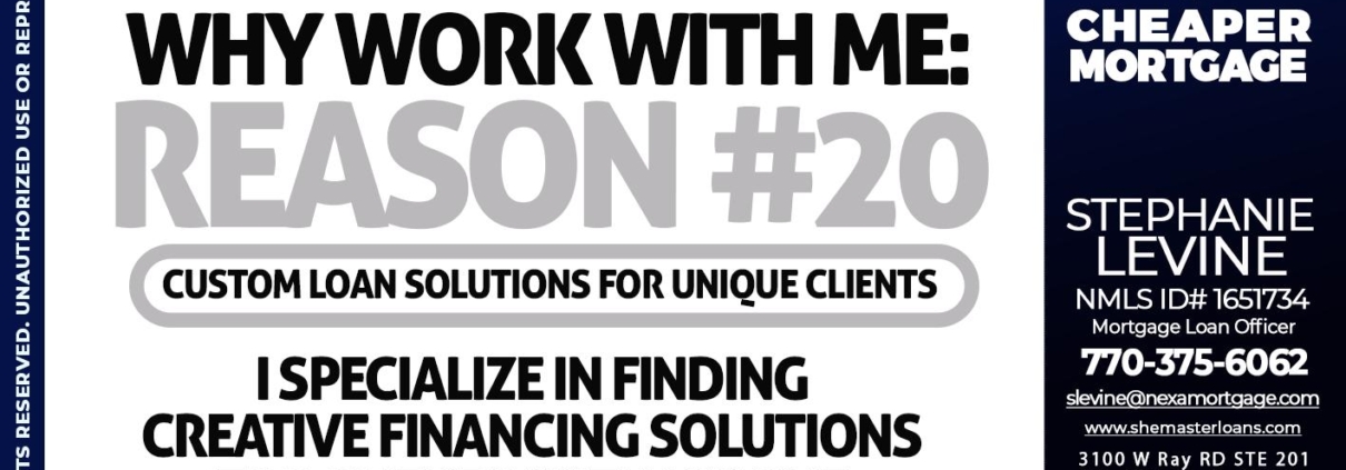 Hi, my name is Stephanie Levine. I’m a Loan Officer with NEXA Mortgage LLC., offering personalized mortgage solutions, fast customized quotes, great rates and service with integrity.