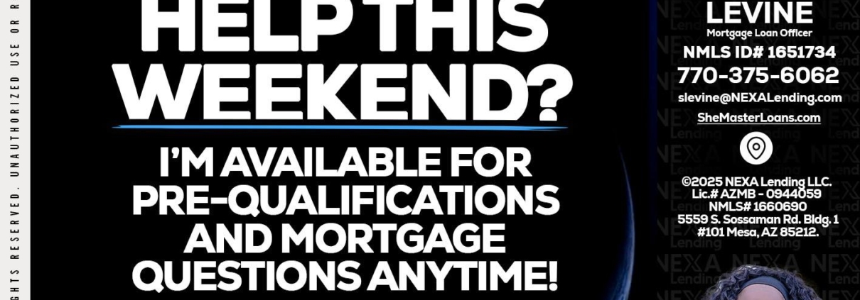 Hi, my name is Stephanie Levine. I’m a Loan Officer with NEXA Lending LLC., offering personalized mortgage solutions, fast customized quotes, great rates and service with integrity.