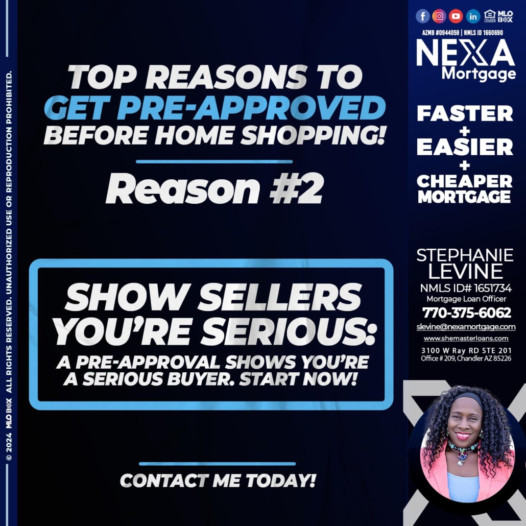 REASON 2 - Stephanie Levine -Mortgage Loan OfficerHi, my name is Stephanie Levine. I’m a Loan Officer with NEXA Mortgage LLC., offering personalized mortgage solutions, fast customized quotes, great rates and service with integrity.