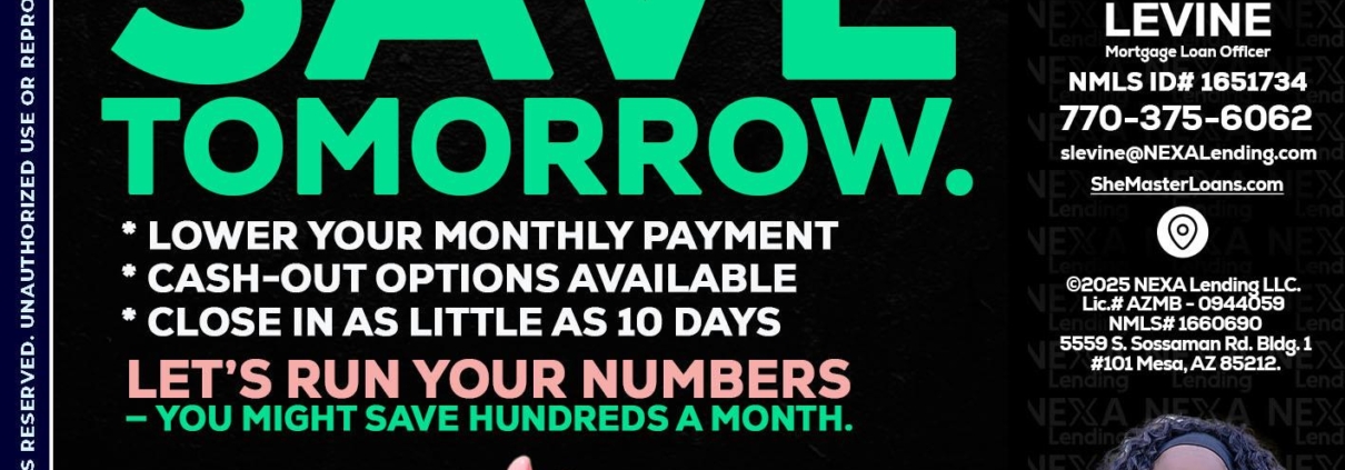 Hi, my name is Stephanie Levine. I’m a Loan Officer with NEXA Mortgage LLC., offering personalized mortgage solutions, fast customized quotes, great rates and service with integrity.