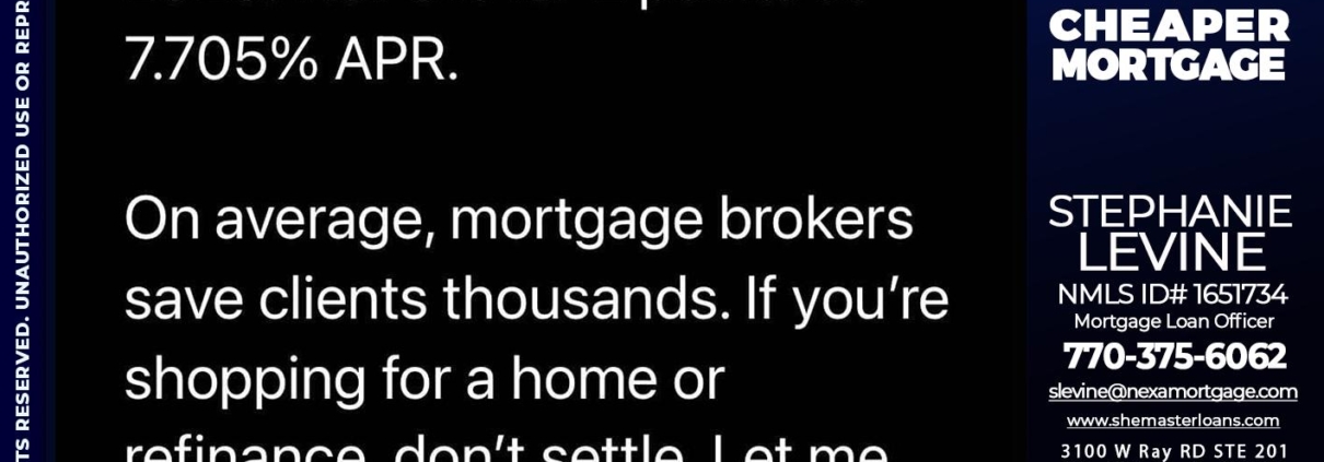 Hi, my name is Stephanie Levine. I’m a Loan Officer with NEXA Mortgage LLC., offering personalized mortgage solutions, fast customized quotes, great rates and service with integrity.
