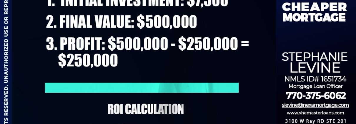 ROI CALCULATION - Stephanie Levine -Mortgage Loan OfficerHi, my name is Stephanie Levine. I’m a Loan Officer with NEXA Mortgage LLC., offering personalized mortgage solutions, fast customized quotes, great rates and service with integrity.