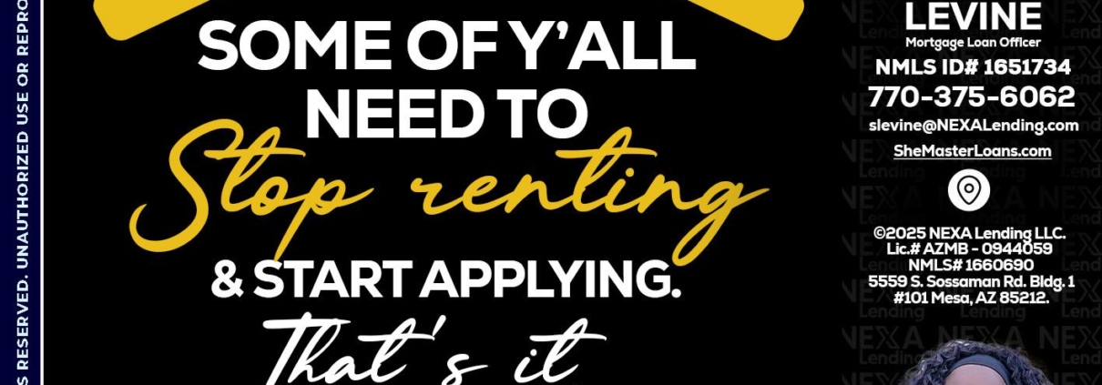 Hi, my name is Stephanie Levine. I’m a Loan Officer with NEXA Mortgage LLC., offering personalized mortgage solutions, fast customized quotes, great rates and service with integrity.