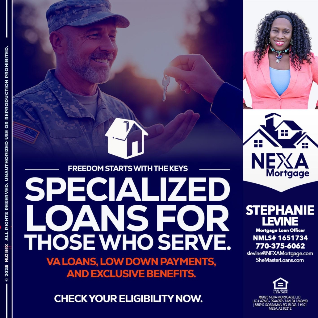 Hi, my name is Stephanie Levine. I’m a Loan Officer with NEXA Mortgage LLC., offering personalized mortgage solutions, fast customized quotes, great rates and service with integrity.