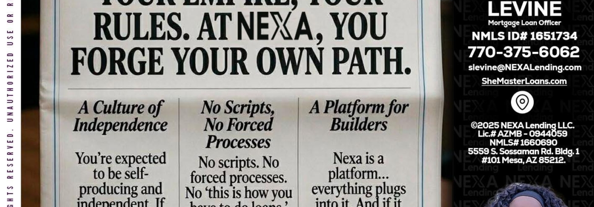 THE NEXA BUILDER - Stephanie Levine -Mortgage Loan OfficerHi, my name is Stephanie Levine. I’m a Loan Officer with NEXA Lending LLC., offering personalized mortgage solutions, fast customized quotes, great rates and service with integrity.