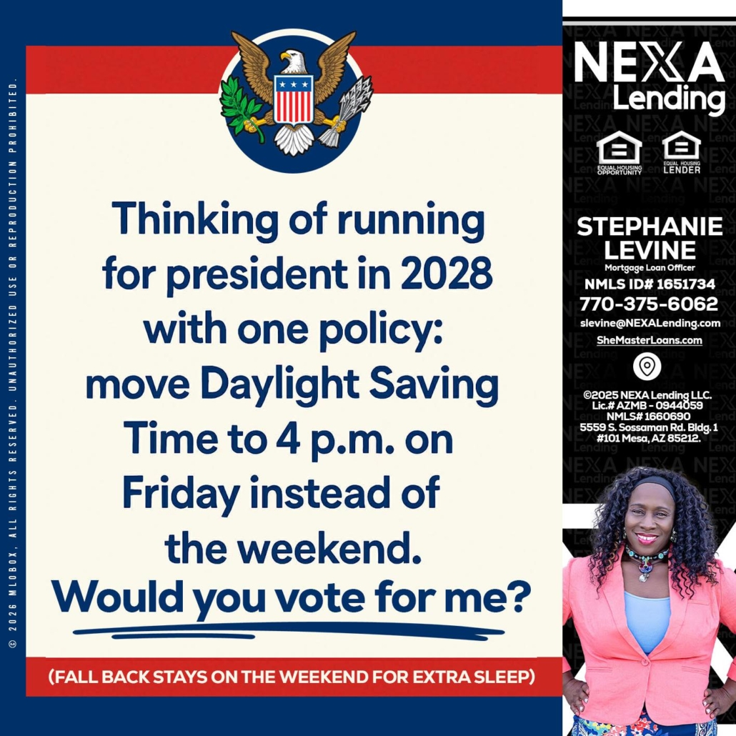 THINKING OF RUNING - Stephanie Levine -Mortgage Loan OfficerHi, my name is Stephanie Levine. I’m a Loan Officer with NEXA Lending LLC., offering personalized mortgage solutions, fast customized quotes, great rates and service with integrity.