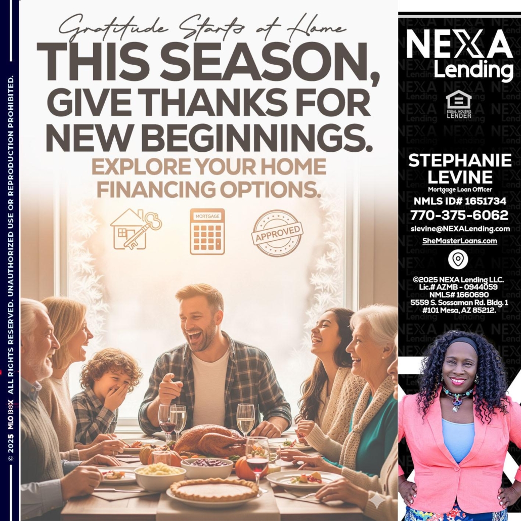 Hi, my name is Stephanie Levine. I’m a Loan Officer with NEXA Mortgage LLC., offering personalized mortgage solutions, fast customized quotes, great rates and service with integrity.