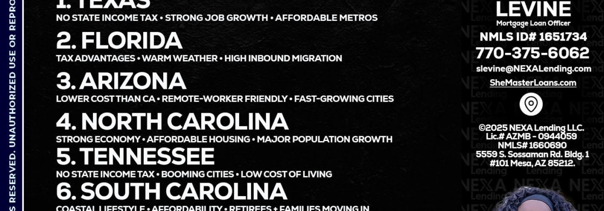 Hi, my name is Stephanie Levine. I’m a Loan Officer with NEXA Lending LLC., offering personalized mortgage solutions, fast customized quotes, great rates and service with integrity.