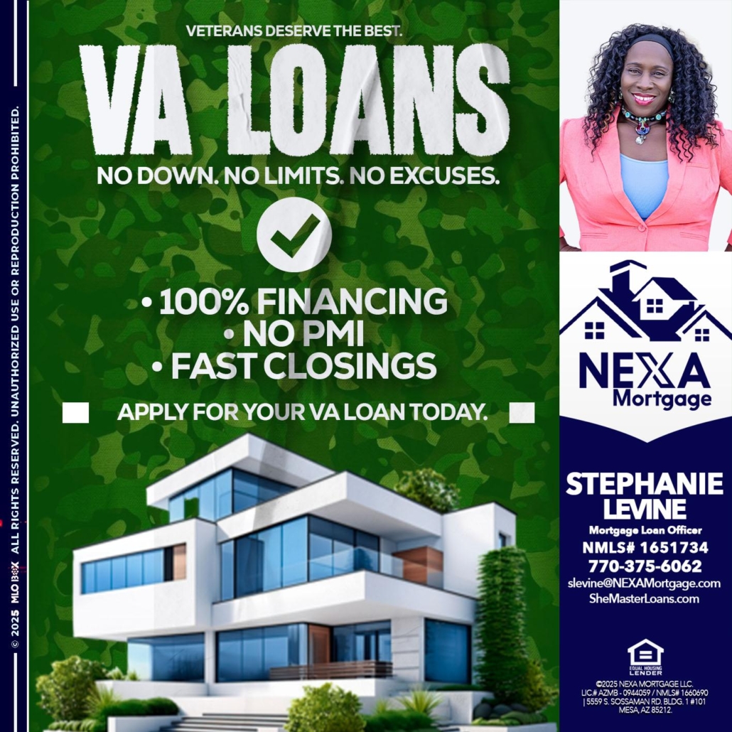 VA LOANS - Stephanie Levine -Mortgage Loan OfficerHi, my name is Stephanie Levine. I’m a Loan Officer with NEXA Mortgage LLC., offering personalized mortgage solutions, fast customized quotes, great rates and service with integrity.