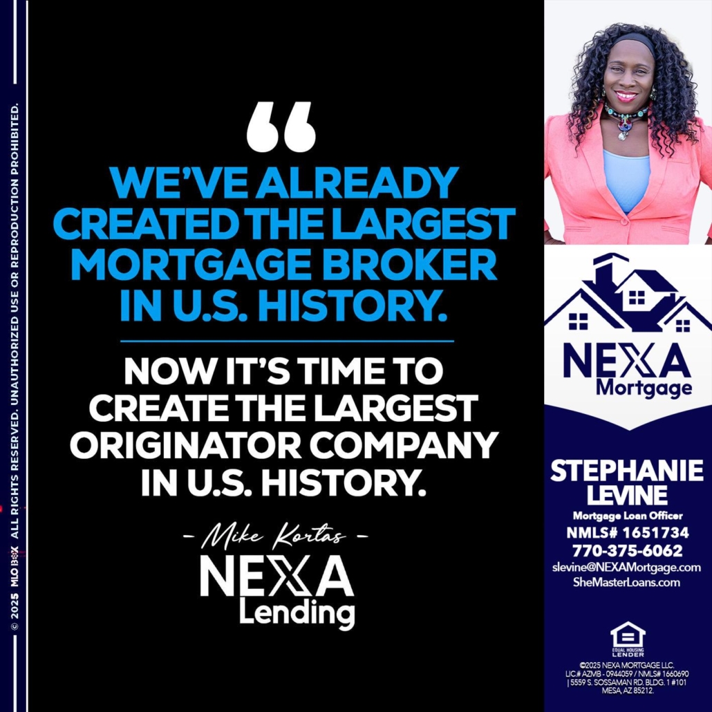 weve already - Stephanie Levine -Mortgage Loan OfficerHi, my name is Stephanie Levine. I’m a Loan Officer with NEXA Mortgage LLC., offering personalized mortgage solutions, fast customized quotes, great rates and service with integrity.